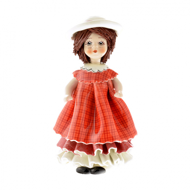 00116 Кукла в красном платье и шляпке h15